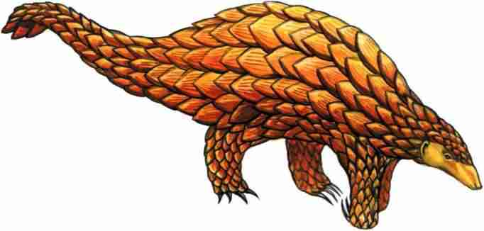 Отряд: ящеры. Тело покрыто крупными плоскими чешуйками, отчего этот ящер похож на живую еловую шишку. Брюхо и лапы изнутри покрыты шерстью. Длина тела около 50 см, хвоста — 35 см, масса около 20 кг. Питается степной ящер муравьями и термитами. Слюна привлекает этих насекомых своим запахом, и они налипают на длинный язык ящера. В потомстве один детеныш. Существует несколько видов степных ящеров, обитающих в тропической Азии и Африке. Некоторые виды — наземные, обычно они передвигаются медленно, а если бегут, то на задних ногах. Древесные ящеры великолепно лазают — им помогает цепкий хвост. Как правило, ящеры — ночные животные.