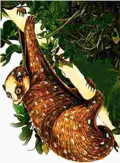 Отряд: неполнозубые. Длина тела до 60 см, хвост — всего 6–7 см, масса 4–5 кг. Ленивец имеет по 3 пальца на передних и задних лапах. Шерсть на теле направлена ворсом не к брюху, как у большинства зверей, а к спине. С помощью изогнутых когтей ленивец хорошо держится на ветках. Поскольку ленивец обычно висит на ветках спиной вниз, внутренние органы расположены у него не так, как у других зверей, а словно в зеркальном отображении. Питаются ленивцы листьями, побегами, плодами, спят по 15 часов в сутки, дыхание и кровообращение замедленные, температура тела 24–33° C, голова поворачивается на 180°. Обитают ленивцы в дождевых лесах Южной и Центральной Америки. У ленивца рождается один детеныш.