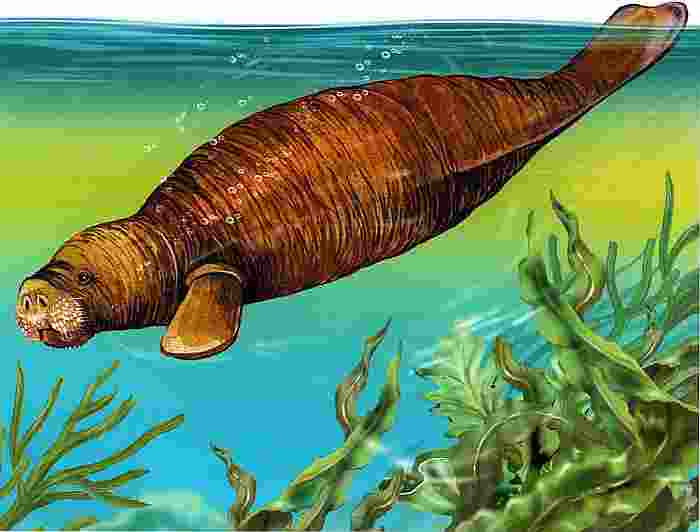 Отряд: сирены. В отряд входят крупные травоядные животные, живущие в воде — ламантины, дюгони, морские коровы. Тело вытянуто, передние конечности превращены в плавники, задних не осталось, хвост превратился в веерообразный плавник. Длина ламантинов около пяти метров, масса — более 400 кг. Эти неповоротливые растительноядные животные относятся к вымирающему отряду, потому что совсем беззащитны. Большую часть времени они медленно передвигаются среди зарослей растений, рвут их губами и жуют. У сирен рождается один детеныш, мать опекает его, кормит молоком до 18 месяцев. Молочные железы находятся на груди, и сирен раньше часто принимали за русалок, откуда и возникло их название. Ламантины живут у берегов Америки, дюгони — у азиатских берегов. На Дальнем Востоке русские первопроходцы открыли в XVIII веке морскую корову — крупное животное массой около трех тонн; в 1741 году она была впервые описана Стеллером, а в 1768 году убит последний экземпляр морской коровы…