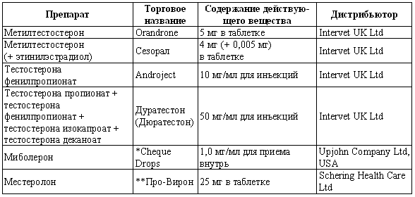 Табл. 16.6. Андрогенные препараты, применяемые для воздействия на репродуктивную функцию собак