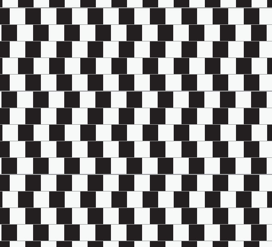 Нам кажется, что горизонтальные серые линии расположены под разными углами друг к другу, но на самом деле они строго параллельны