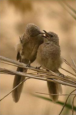 У арабских серых дроздов (Tuntoides squamiceps) только высокоранговые самцы имеют право кормить своих сородичей.