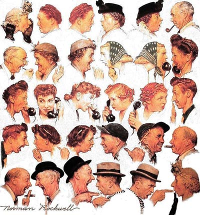 Есть мнение, что главным стимулом для развития речи у наших предков была необходимость посплетничать (Норман Роквелл, Сплетники, 1948)