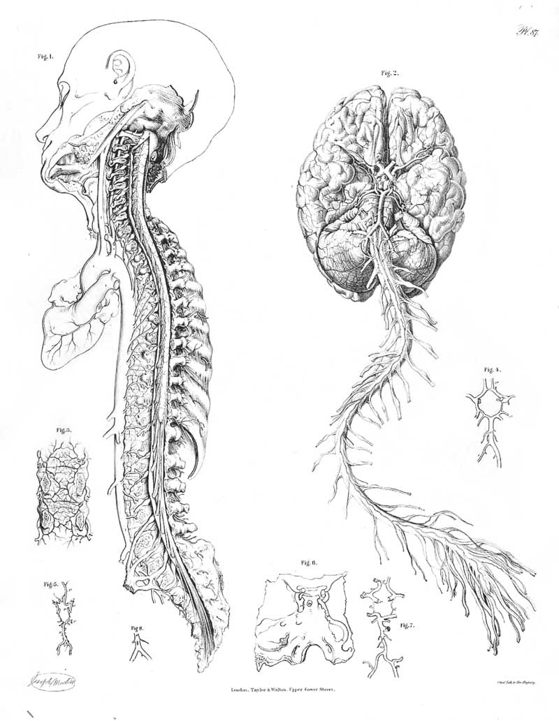 Рисунок из анатомического атласа Ричарда Куэйна (англ. The anatomy of the arteries of the human body, with its applications to pathology and operative surgery). 1844 г.