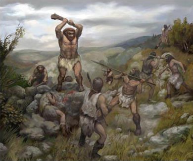 Чтобы понять, в каком диапазоне находились эти четыре параметра в коллективах первобытных людей, Боулс привлек обширные археологические данные. Он пришел к заключению, что конфликты в палеолите были весьма кровопролитными: от 5 до 30 % всех смертей, по-видимому, приходилось на межгрупповые конфликты.