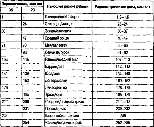 Таблица 5. Периодичность геохронологических рубежей в позднем палеозое-кайнозое