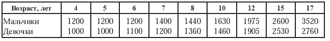 Относительно величин ЖЕЛ в литературе отмечается значительные различия у разных авторов. Это, по-видимому, можно объяснить тем, что ЖЕЛ зависит от многих факторов: возраста и пола, стадии полового созревания, влияний эпохальной и индивидуальной акселерации, характера морфотипа и популяционных особенностей строения тела, климатогеографических и социально-экономических условий жизни и т. п. Можно привести для примера наиболее часто встречающиеся данные о возрастной динамике ЖЕЛ (табл. 28).