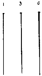 Для накалывания насекомых употребляются длинные тонкие «энтомологические» булавки. Приобрести их можно в магазинах наглядных пособий. Булавки бывают восьми сортов. Самые тонкие — № 00, а самые толстые — № 6. Для начала купите себе № 1, № 2 или № 3. (Рис. 2.)
