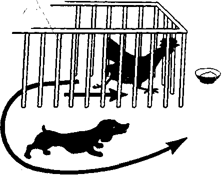 Но такими утверждениями мы мало чего добьемся. Для того чтобы животное дошло до пищи, находящейся за решеткой, необходимо, чтобы на него воздействовали более сильные побуждения, действующие временно в на правлении, [86] противоположном притягательной силе пищи. Рассмотрим же по порядку, какие процессы здесь происходят.