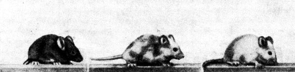 Рис. 9. Постепенное поседение шерсти у мышей после облучения