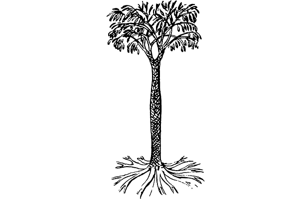По этим остаткам ученые восстановили общий вид предков плауна. Это были деревья с купой шиловидных листьев наверху, сидящих на стволе спиралью. Нижние листья постепенно опадали и оставляли ромбические следы. Поэтому весь ствол лепидодендронов словно разграфлен и несколько напоминает вафлю. Потомок мощного дерева лепидодендрона — наш современный плаун — выродился в малозаметное, стелющееся по земле растение.