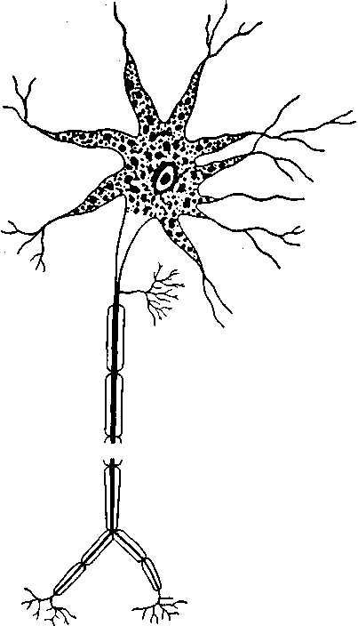 Нервная клетка. Разрыв нервного волокна показывает, что на рисунке изображена только его начальная и конечная части
