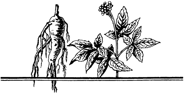 Мистических всяких историй и легенд, связанных с женьшенем, имеется превеликое множество — и старых, и современных, и европейских и, в особенности, азиатских. Китайцы вообще отводили корням растений почетное место в различных культовых обрядах и верованиях, а корень женьшеня к тому же часто по форме напоминает фигурку человека. Те немногие экземпляры, которые мне доводилось видеть, ее даже и близко не напоминали, однако, вся, абсолютно, литература о женьшене на этом настаивает. Иногда можно встретить забавные примеры внушаемости авторов. Скажем, в МСЭ приведен рисунок. Изображены на нем: «1 — цветущее растение» (вместе с корнем; корень себе как корень, как у петрушки, например); «…3–7 — различные формы корней». Вот тут действительно прямо как на выставке «Природа и фантазия» — и сидящий толстяк, и старик с клюкой, и человек, с трудом поднимающийся по лестнице…
