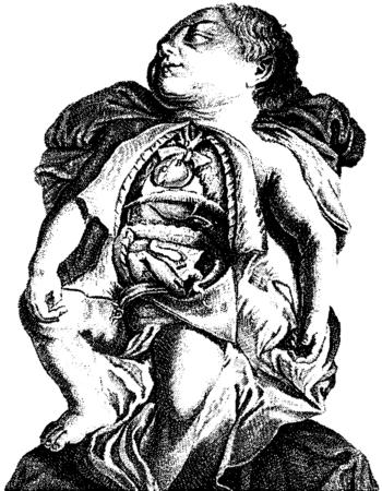 В последние годы появилось немало данных, почему ориентация наших внутренних органов такая, какой мы ее знаем. Один из источников этих сведений – крайне редкие случаи рождения людей (по максимальным подсчетам, их частота составляет 1:8500), которые, хотя и при отсутствии близнеца, характеризуются обратным расположением внутренних органов. Самым известным в истории человеком, который родился один, но с обратным расположением органов, был старый французский солдат, умерший в Доме инвалидов в 1688 году. Неприметный при жизни, всего лишь один из тысяч, маршировавших по команде Людовика XIV через Фландрию, осаждавших Валансьен и переправлявшихся через Рейн для усмирения германских князьков, он обрел посмертную славу, когда вскрывавшие грудную клетку хирурги обнаружили, что сердце у него находится справа. В XVII веке парижане слагали о нем вирши; в XVIII он фигурировал в "споре о монстрах"; в XIX стал примером "задержки развития" – модной в то время теории.[44] Появись он сегодня на столе патологоанатома, едва ли приобрел бы известность, а был бы просто диагностирован как носитель врожденной аномалии, называемой синдромом Картагенера.