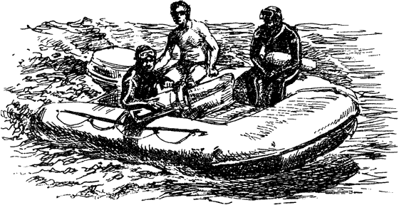 Сегодняшняя неудача вызвана тремя обстоятельствами: во-первых, подвел новый 33-сильный подвесной мотор, во-вторых, море не так уж гладко, чтобы «Зодиак» и катер могли свободно маневрировать, в-третьих, ход «Калипсо» замедляется из-за отсутствия правого винта.