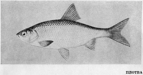 Плотву среди прочих видов карповых рыб очень легко отличить по наиболее характерному признаку — оранжево-красной радужине глаза. Чешуя у нее серебристо-белая, крупная; в боковой линии, которая хорошо заметна, от 41 до 48 чешуй. Спинной и анальный плавники короткие. Глоточные зубы однорядные, обычно 6–5. Рот расположен на конце головы или полунижний. Все плавники, за исключением спинного, имеют оранжево-красный оттенок. Плотва достигает длины 30–35 см и массы 800-1000 г. Обычные ее размеры 10–25 см и масса от 20 до 200 г. Живет плотва довольно долго, до 20 лет.