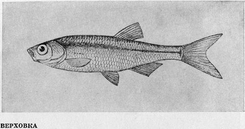 Название этой самой маленькой по размерам рыбы семейства карповых произошло от того, что она постоянно плавает в толще воды, часто у самой поверхности. Внешне похожая на уклейку, с такой же серебристой, нежной и легко спадающей чешуей, верховка хорошо отличается от нее очень короткой боковой линией, простирающейся от жаберной щели с небольшим наклоном вниз не далее 2-12-й чешуи, и более толстой спинкой. Тело верховки умеренно удлиненное, рот направлен вверх, нижняя челюсть несколько входит в углубление на верхней челюсти. Глоточные зубы двухрядные (обычно 5.1–1.4), реже однорядные (5–4 или 5–5). В спинном плавнике 3 неветвистых и 8–9 ветвистых лучей, в анальном — 3 неветвистых и 10–13 ветвистых. Лучи всех плавников мягкие. Обычная окраска спины — бледно-зеленоватая; верх головы темнее, чем спина. Бока ярко-серебристые, на них ближе к хвостовой части тела иногда заметна голубоватая горизонтальная полоса. Все плавники бесцветные. Максимальная длина верховки не превышает 8–9 см; обычные ее размеры — 4–6 см. Живет верховка не более 5 лет.