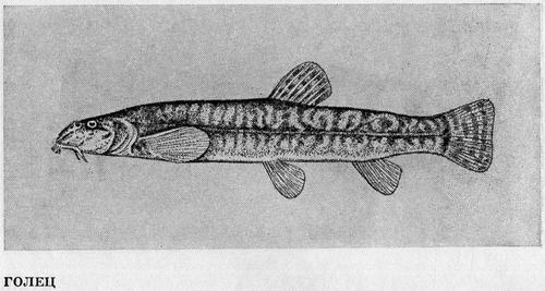 У гольца удлиненное цилиндрической формы тело, покрытое, как и у щиповки, очень мелкой, не заметной невооруженному глазу, циклоидной чешуей. Под маленькими глазами нет шипиков. Голова слегка уплощена сверху вниз. Нижний рот обрамлен хорошо развитыми мягкими губами и 6 усиками, из которых 4 находятся на конце рыла и 2 — в углах рта. Хвостовой плавник усеченный или очень слабо выемчатый. Окраска тела довольно изменчива и зависит от местообитания рыб, обычно бурая или темно-серая с пятнами, которые, однако, не образуют поперечных полос. Гольцы редко бывают длиной более 13–15 см, обычные их размеры — 8-12 см. Как и щиповка, голец весьма широко распространен по Подмосковью, где встречается в разных по величине реках, в ручьях и прудах. Это — типично донная рыба, большую часть времени проводящая неподвижно, прячась под камнями, корягами и другими предметами, лежащими на дне. Держится либо в одиночку, либо небольшими группами. Питается личинками комаров, поденок, ручейников и другими беспозвоночными.
