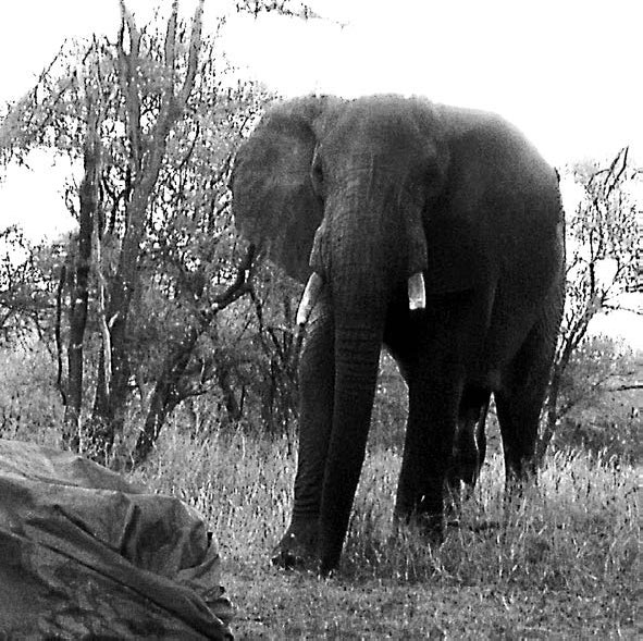 По моей версии, мы ринулись в ближайшую палатку (нас набилось туда, как сельдей в бочке) и мигом застегнули молнию (потому что четырехтонные слоны не умеют открывать молнии). Потом просто сидели внутри, дрожали и перешептывались, стараясь прийти в себя.