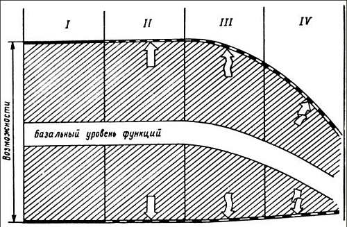 И вместе с тем надежность систем при старении не является результатом однонаправленного изнашивания, истощения, ограничения. Благодаря механизмам витаукта надежность систем может сохраняться, несмотря на выраженные проявления старения. В этом и сказывается роль процессов саморегуляции, мобилизующих приспособительные механизмы в ответ на сдвиги в отдельных звеньях системы.