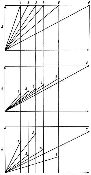 Рис. 7. Схема видовых различий изменения ряда признаков в процессе старения. А — онтобиологические; Б — хронобиологические; В — видоспецифические.