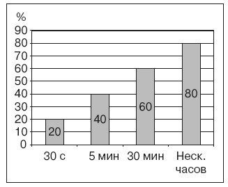 Рис. 39. Количество медленных мышечных волокон (I типа) в скелетных мышцах человека, адекватное для работы различной продолжительности