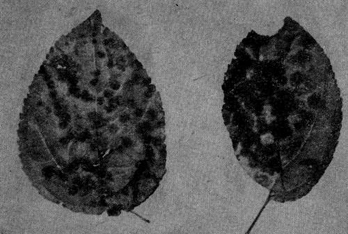 В большинстве районов СССР возбудитель парши поражает листья, цветки и плоды яблони и только в Средней Азии, на побережье Черного моря, в некоторых районах Белоруссии и Украины — молодые веточки.