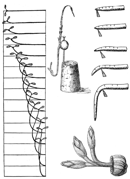 Рис. 3–7 а-г. Примеры гравитропизма. Растения ощущают силу гравитации: корни растут вдоль гравитационного вектора, а стволы и побеги – в противоположном направлении