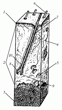 8 – волосяная луковица; 9 – волосяной сосочек; 10 – волосяная сумка
