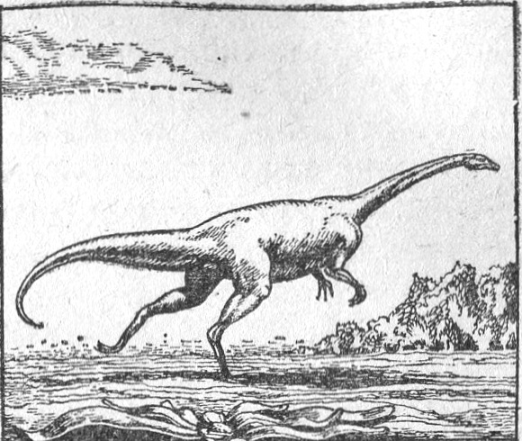 Особенно поучительна палеонтологическая история завропод, прослеживаемая с середины юры почти до конца мела. Завроподы (рис. 4) имели массивное тело, мощные конечности (передние в большинстве случаев значительно короче задних), длинную шею, заканчивающуюся маленькой головой, и очень длинный хвост. Череп у завропод был поразительно мал. Соответственно до невероятности мал был у них и сильно сжатый в передне-заднем направлении мозг, занимавший незначительную по объему полость в самом заднем отделе мозговой капсулы. Подотряд завропод включает в себя не только крупнейших из всех пресмыкающихся, но и крупнейших из всех вообще наземных животных всех времен.