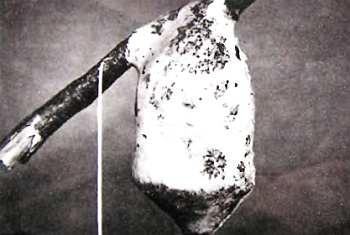 Раскоп, позволяющий видеть неповрежденную оболочку подземного гнездо желтожилетных ос и ее крупночешуйчатое строение. Слева вверху сохранилась даже трубка «осопровода», выходящая в шахтный коридор. Удалив оболочку, натуралист Гэй Пиквил, сделавший эти редкие снимки, нашел в гнезде, из которого осы, разумеется, были выкурены, 8 висящих один над другим полномерных сотов.