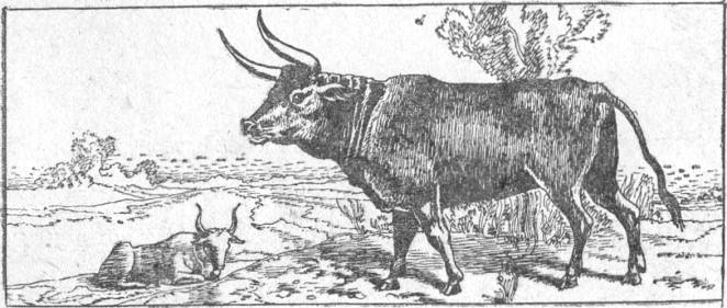 Тур (рис. 30) — общепризнанный предок домашнего европейского крупного рогатого скота, исчезнувший в XVII в. Его отличительная особенность — мощные рога, направленные вперед и несколько в стороны (у некоторых особей длина рогов, измеренная по кривизне, достигала 2 м). Быки тура были черные, а коровы, по-видимому, гнедые. Среди современных форм более всего напоминают тура испанские черные быки и серый украинский скот, а также белые дикие парковые быки, сохранившиеся в парках Англии и Шотландии. Ранее, тур был распространен почти по всей Европе, в ископаемом же состоянии он известен на значительной части территории нашей страны: от западной ее границы до Байкала на востоке (к северу его ареал достигал Ладожского озера, а на юге — Крыма и Кавказа).