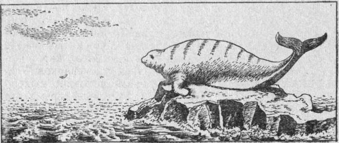 Морская, или стеллерова, корова (рис. 31) известна нам лишь по нескольким скелетам и по описанию Г. В. Стеллера — русского естествоиспытателя, открывшего это животное в 1741 г. у Командорских островов. По свидетельству Стеллера, морские коровы держались стадами на мелководьях, среди зарослей, составлявших их основную пищу. Они подходили к лодке так близко, что можно было, оказывается, их гладить рукой по спине. Естественно, что охота на этих животных не представляла особых трудностей. В 1768 г. морские коровы уже полностью вымерли.