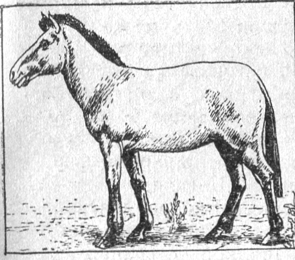 Судя по известным описаниям, тарпан (рис. 29) был небольшой мышастой масти лошадью с широкими ноздрями, небольшими живыми и злыми глазами, с темными ногами, гривой и хвостом. Он водился на юге европейской части России менее чем сто лет назад. Еще в 30-х годах прошлого столетия эта степная дикая лошадь была распространена, оказывается, по всему Азово-Черноморскому побережью. К 60-м годам XIX в. сохранились отдельные косяки тарпанов, а к концу столетия и они были полностью истреблены (имеются сведения, что в годы первой мировой войны последний тарпан доживал свой век где-то близ Полтавы, в имении одного князя). Между тем в древности тарпаны населяли обширные пространства от юга Европы до Литвы и Пруссии на севере, ископаемые же остатки этих диких лошадей находили и на громадных площадях Азиатского материка. Вымирание тарпанов — результат интенсивной охоты, которую повсеместно вели на них ради вкусного мяса. Исчезновение этих животных могло быть ускорено также распашкой целинных степей, обусловившей заметное сокращение их ареала.