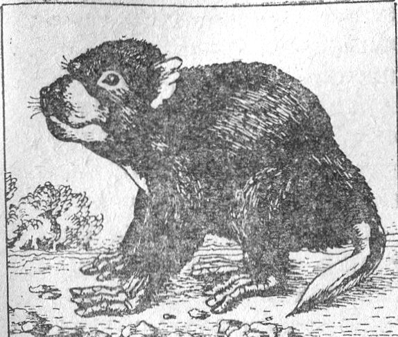 Нам уже приходилось отмечать, что своеобразная фауна сумчатых Австралии была в значительной мере вытеснена более высокоорганизованными плацентарными, ввезенными европейцами на этот континент. Большинство широко распространенных еще в прошлом веке сумчатых находится в настоящее время на грани вымирания. Таковы, в частности, сумчатый дьявол (рис. 35), тасманийский волк (рис. 36) и др. Очень невысока численность многих видов кенгуру, преследуемых человеком из-за меха.