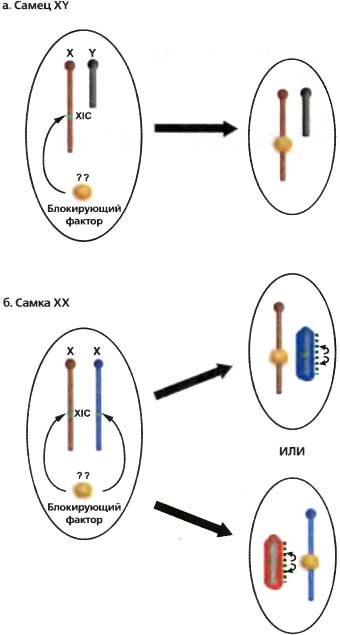 Рис. 17.5. Модель блокирующего фактора для случайной инактивации Х-хромосомы