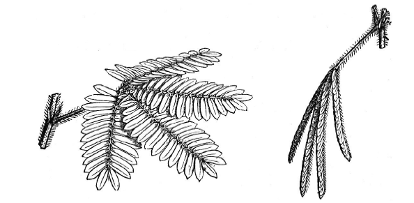Рис. 3–4. Mimosa pudica с раскрытыми (слева) и закрытыми (справа) листьями. Листья закрываются в ответ на определенные тактильные стимулы