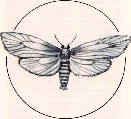 Вернее было бы сказать — питались, так как все больше и больше этих бабочек переселяются из леса в зернохранилища и сейчас уже о грибной моли говорят как о серьезном амбарном вредителе.