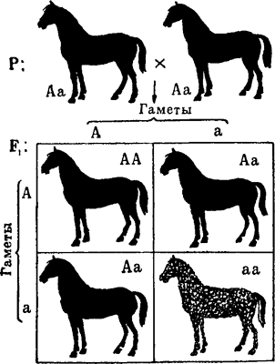 Университет штата Мичиган (США) на учебной ферме разводил тяжелых лошадей першеронов. Шерсть у лошадей, как известно, гладкая. Но вот дочери жеребца Тревизо были скрещены с жеребцом Сэр-Лает. От скрещивания родилось 42 жеребенка. Большая часть была с гладким волосяным покровом, но пять жеребят оказались… «каракульскими», с извитыми, скрученными в завиток волосами! Из родословных выяснилось, что отец Тревизо был дедом по материнской, а мать — бабкой по отцовской линии жеребца Сэр-Лаета. Как объяснить появление курчавых жеребят?