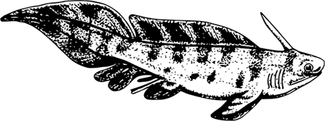 Другие необычные пермские акулы – Xenacanthida (или Xenacanthiformes), например, Orthacanthus и Xenacanthus. Это были немаленькие рыбки – от метра до трех и даже четырех, особенно учитывая, что жили они в пресных водоемах. У этих вытянутых акул на загривке торчал здоровенный шип, который у предков располагался в основании спинного плавника, но со временем сместился на голову; спинной же плавник превратился в длинную низкую лопасть. Верхняя лопасть хвостового плавника стала длинным заостряющимся концом тела, а нижняя лопасть сместилась далеко вперед, став фактически вторым анальным плавником. Зубы имели странную V-образную форму, видимо, предназначенную для разгрызания панцирей раков и палеонисков. На самом деле, представители обоих упомянутых родов появились еще в конце девона, а вымерли аж в конце триаса – удивительная стабильность, учитывая массу случившихся за это время событий.