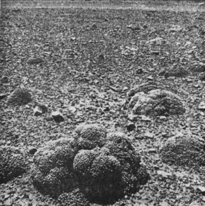 В самых засушливых районах Сахары, на бесплодных щебнистых равнинах, где порой годами не выпадает ни капли дождя, растет серо-зеленое растение подушковидной формы Anabasis aretiodes (фото 88). Оно плотно прижимается к земле и всем своим видом напоминает подстриженного ежа.
