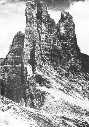 Фото 91. Скалы-башни в горах Бож на высоте 2670 м над уровнем моря (Швейцария). Подножия скал сплошь одеты чехлом из доломитового щебня. Но и на этой скудной почве высокогорных пустынь обитают растительные сообщества. Одно из характерных для каменистых осыпей растение — дриада.