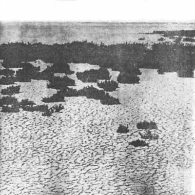Фото 94. В мелководных лагунах области Камарг на юге Франции для растений существуют лишь экстремальные условия жизни: затопление либо засуха, влажный ил либо твердая, как камень, растрескавшаяся почва. Местами поверхность покрыта слоем почти чистой поваренной соли. Виды Salicornia приспособились к столь суровым условиям окружающего мира, в котором, с одной стороны, «крутой рассол», а с другой — беспощадное солнце.