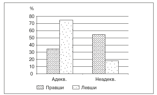 Рис. 41. Адекватность выбора вооруженной руки у фехтовальщиков