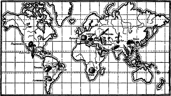 Схематическая карта главнейших растений, употребляемых в пищу.