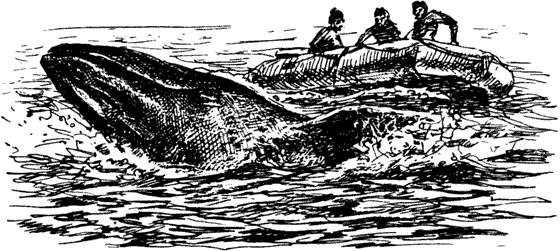 Как видно из рассказа Бернара, гоняться за китом не всегда безопасно. До этого случая нам попадались сплошь миролюбивые киты; правда, здесь, в Тихом океане, мы работали с серыми китами Eschrichtius gibbosis.