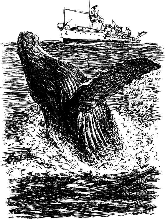 Надо самолично видеть ныряющего кашалота, чтобы оценить замечательное изящество движений его хвоста. Из всех китообразных только кашалот, прежде чем идти на дно, занимает вертикальную позу, и хвост его при этом вздымается над водой наподобие огромных развернутых крыльев…