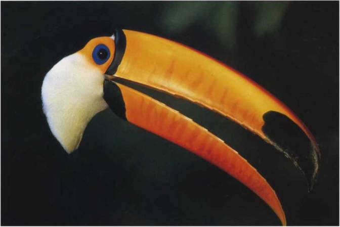 Туканы — крупные яркие птицы, населяющие густые тропические леса Южной Америки. Удивительные краски цветов и фруктов, игра солнечного света, просачивающегося сквозь многочисленные оттенки зелени лиственного шатра на поверхность перьев, создают сказочные цветовые эффекты. Благодаря разноцветному оперению, тукан настолько сливается со своей средой, что если ему надо привлечь внимание своей брачной подруги, он усаживается на заметную ветвь или же, исполняя брачный танец, зазывает ее громкими звуками. Красивая внешность тукана не только помогает ему привлекать подругу, но и заставляет отступить соперников своего же вида.