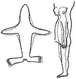 Насколько же жесток этот каркас и что может его поломать? Посмотрим на несколько случаев явных поломок конструкции, из тех, что принято с давних пор именовать уродствами. Вспомним сверхкомплектный зуб морского кота, вклинивающийся в зубной ряд, не меняя его длины, или дефект твердого неба («волчья пасть»), который не мешает всем остальным деталям контура черепа владельца вписываться в узкие рамки индивидуальной изменчивости. Или возьмем известные из любого руководства по человеческой анатомии предельно искаженные на первый взгляд черепа «штеттинского ткача», гипсицефала или акромегалика. При сравнении с нормой они показывают, что соответствующие человеческие уродства связаны с одной или несколькими локальными надстройками в рамках стандартной конструкции (как, скажем, у черепа моржа по сравнению с черепом морского льва). Столь же локальны отклонения от стандартных пропорций тела при ахондроплазии[13], ужасной у человека, но вполне терпимой у разнообразных домашних животных. Все перечисленные дефекты конструкции строго локальны, не меняют жесткую рамку, но число поврежденных локусов меняется (рис. 19).
