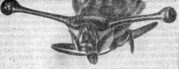 У пчел и шмелей, кроме отчетливо видных фасеточных глаз, есть еще три малозаметных простых, одиночных, глаза (рис. 7). Назначение этих глаз до последнего времени объясняли по-разному: либо как вспомогательные органы для видения на расстоянии или фиксирования положения цели, либо как органы, определяющие интенсивность освещения. Недавно получены сведения, подтверждающие последнее предположение.